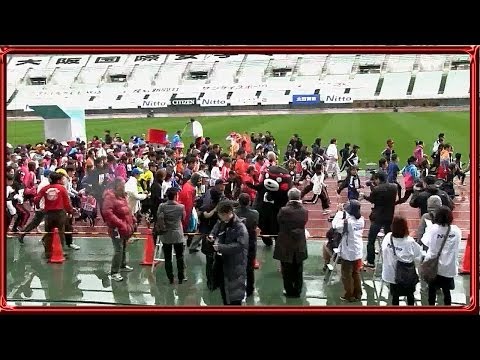 その女子マラソンが午後12時10分からなのですが、その前に「大阪エンジョイRUN」という子どもからお年寄りまで楽しみながらゆっくり走る大会がありました。人気者のくまモンも登場して朝早いというのに出場者だけでなく、くまモンファンも声援をおくるという賑やかな大会でした。